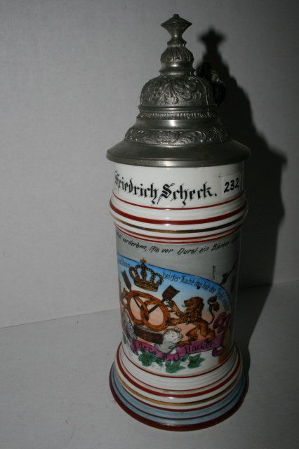 LOT OF GERMAN POTTERY, STEIN / MUG4 days LeftSmall German Beer SteinMar 17, 2026German Salt Glaze Octoberfest Stein6 days LeftWWI German Bavarian Named Regimental Soldier SteinMar 07, 20261L Occupational Porcelain Miller Stein w lithoMar 21, 2026Regimental Feld Art No 8 Saarlouis SteinMar 21, 2026Vintage German Beer Stein Lidded Pewter Festive Scene tall marked West GermanyMar 02, 2026Pschorr Brau Munich Brewery Stein & Matched LidMar 21, 20261L Munich Child & Octoberfest Symbols SteinMar 21, 2026Dwarfs Filling Steins at a Barrel Stoneware SteinMar 21, 2026Vtg Heidelberg Relief Ceramic Beer Stein GERMANY3 days LeftWWI German Bavarian Named Regimental SteinMar 07, 2026Rare Occupational Mettlach Miners Stein & LidMar 21, 2026Regimental No 121 Ludwigsburg Gefreiter SteinMar 21, 2026Occupational Wagon Driver Porcelain SteinMar 21, 2026Regimental Unteroffizier Stein Hessen 9Mar 21, 2026