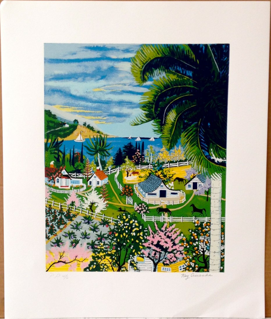 SoldKay Ameche Limited Edition Print, Vibrant Countryside SceneThis beautifully detailed limited edition print by Kay Ameche captures a lively countryside landscape with vivid colors and intricate details. Numbered 60/250, this piece showcases a serene rural settSee Sold Price