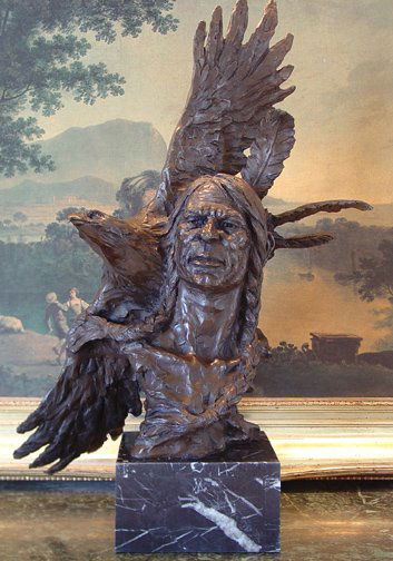 "NATIVE AMERICAN WITH EAGLE" BRONZE SCULPTURE