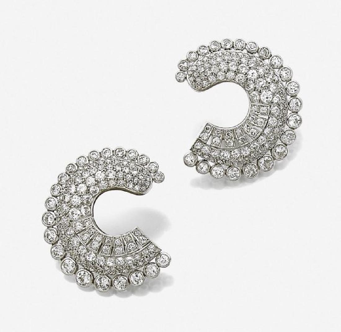 Art Deco Platinum Diamond Clips 22.00 Ct F-G VVS-VS