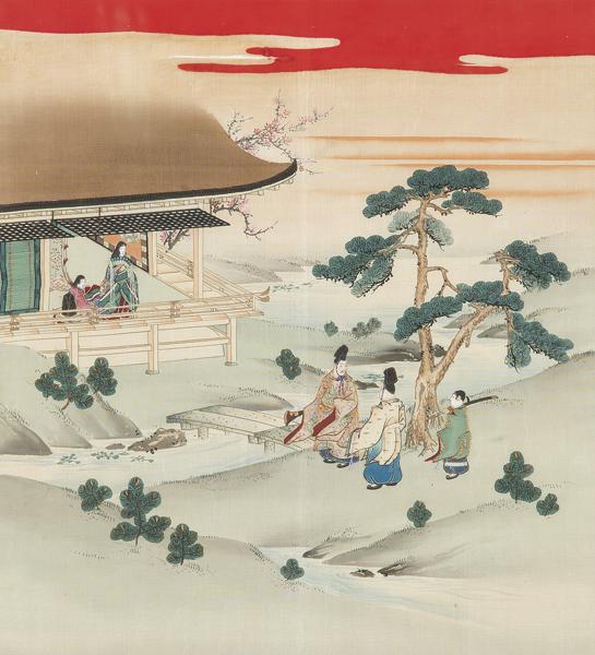 "Palatial scene" painted silk