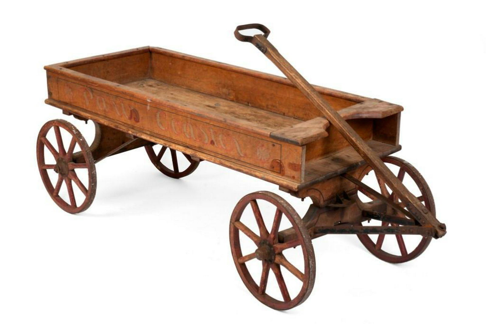 Lot of Vintage Kids Toys: Wagon, Sled, & Tricycle.639 Lots AwayPAIR OF VINTAGE TOY WAGONS18 hrs LeftWestern Folk Art Wagon Wheel Table and Chairs Set, 1960DAISY CHILDREN'S WOODEN WAGONFeb 19, 2026Antique Bentwood Field Cradle w/ Wheels.548 Lots AwayEARLY FRENCH TIN HORSEDRAWN CARTFeb 27, 2026Antique Red Metal Wagon Vintage Farmhouse Decor 39.5 x 17 x 28.53 days LeftCIRCUS WAGON MODEL #815 days LeftFINEST QUALITY AMERICAN BABY CARRIAGE, CIRCA 1876Feb 22, 2026DOLL & CO. BAGGAGE CART W/ PORTERFeb 27, 2026Tea Cart7 days LeftHand wrought iron toy tricycle, wood seat and handles.Feb 25, 202618TH C. AMERICAN SPINNING WHEELFeb 21, 20261940s Vintage Americana Folk Art Toy Horse and Cart Set2 days LeftEnesco Wooden Wagon21 hrs LeftA LATE VICTORIAN OAK NOVELTY SMOKER'S CABINET IN THE FORM OF A CARRIAGE, LATE 19TH CENTURYFeb 18, 2026