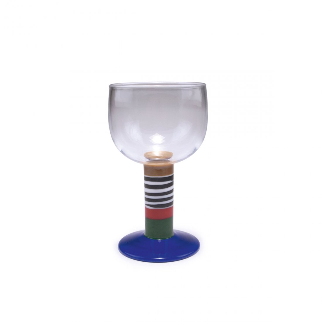 SoldA 'Pop' glass goblet,A 'Pop' glass goblet, 1967, designed by Gunnar Cyrén (Swedish, 1931-2013) for Orrefors, the semi-opaque bowl raised on an opaque white and blue stem, engraved to the base 'Orrefors Expo B.U 482-6See Sold Price