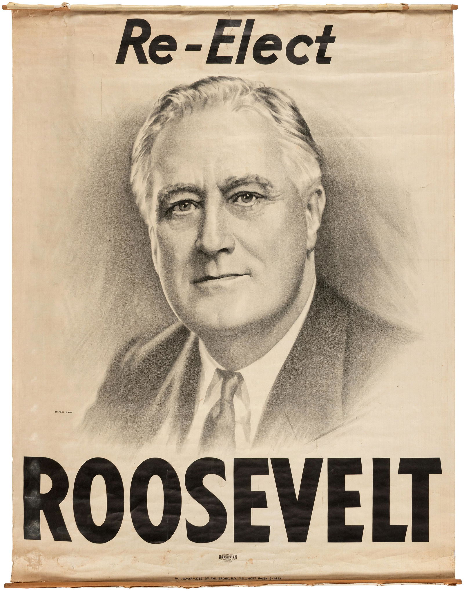 "RE-ELECT ROOSEVELT" STRIKING PORTRAIT BANNER.
