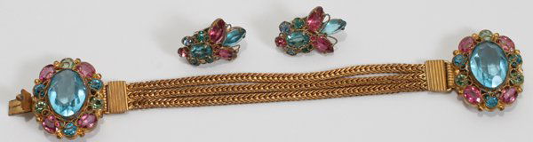 'ROBERT' RHINESTONE BRACELET & EARRINGS, L7"