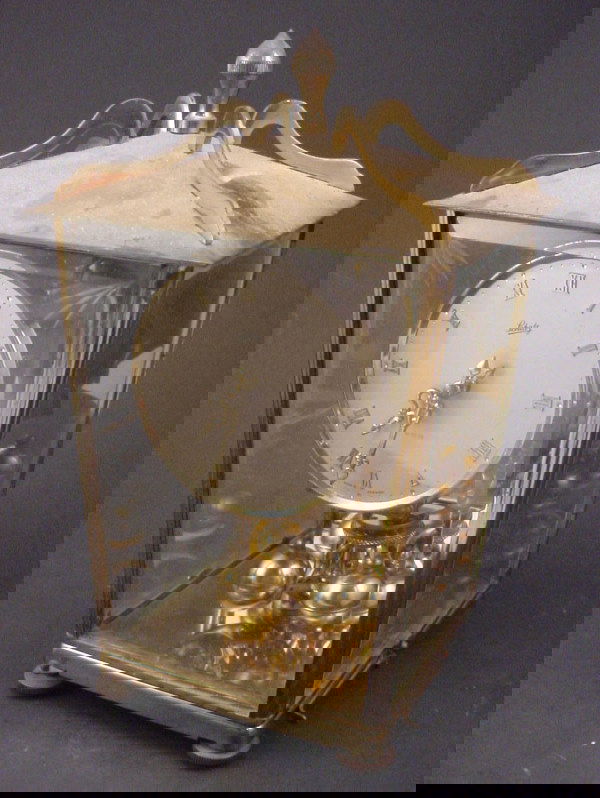 SoldAnsonia Crystal Paris Regulator Brass Clock, c.1900, dial marked, with faux mercury pendulum withAnsonia Crystal Paris Regulator Brass Clock, c.1900, dial marked, with faux mercury pendulum with key, 12 1/2" h. 8 1/4" w. 7" d.See Sold Price
