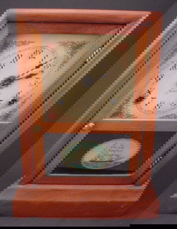 SoldTwo Cottage Kitchen ClocksOne oak 1910 complete kitchen clock and 1890 Walnut cottage clock with ship etched glass.See Sold Price