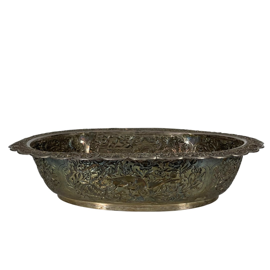 银龙凤草雕大盆 SILVER REPOUSSE EVERTED RIM BOWL