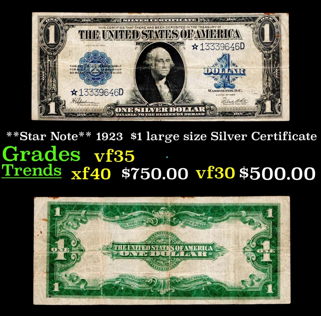 **Star Note** 1923 $1 large size Silver Certificate Grades vf++