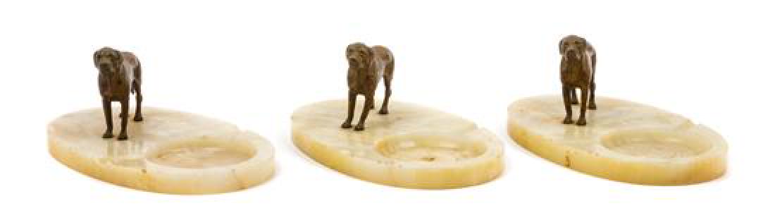 * Three Bronze and Marble Mastiff Ash Receivers Width 9