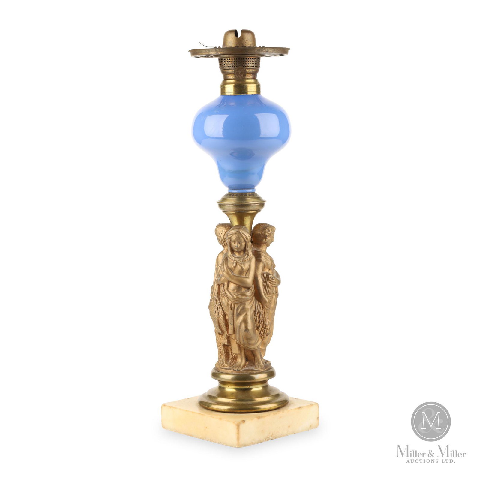 "Three Graces" Figural Stem Kerosene Stand Lamp