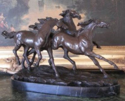 "THREE RUNNING MUSTANGS" BY BARYE BRONZE SCULPT