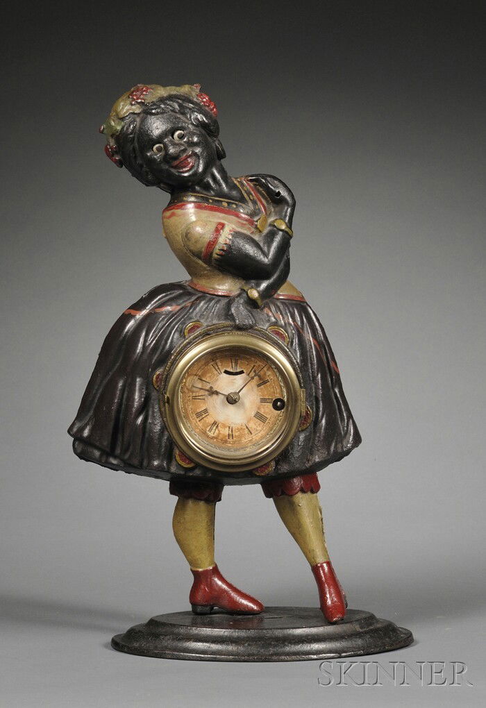 New Haven (attributed) Bracket Clock2 days Left18th Century Austrian Bracket Clock2 days LeftBlack Starr & Frost - Empire Mantle Clock2 days LeftJunghans Diana Clock2 days LeftVictorian Waterbury Cast Iron Mantel Clock.4 days LeftJean Clesinger "Zingara" Bronze & Marble ClockApr 07, 2026Table clock with female figure. French school. 19th century.8 hrs LeftAdam and Eve Figural Mantle ClockMar 11, 2026Black Americana Cast Iron John Harper & Co England Bank Maid5 days LeftAntique European Figural Mantel Clock, Spelter, c. 1900Mar 05, 2026Mother and Child Toy BankMar 07, 2026A BOW FIGURAL CANDLESTICK PROBABLY EMBLEMATIC OF AFRICA FROM A SERIES OF THE CONTINENTS, CIRCA 1760Figural Cast Iron Doorstop, “Mammy" Form, ca. 20th centuryMar 07, 2026PERRY & Co CLOCKWORK BLACK DANCERMar 14, 2026A rare and antique cold painted brass figural "John Bull" alarm clock manufactured by Friederich87 Lots AwayMottahedeh Porcelain Allegorical FigureMar 07, 2026