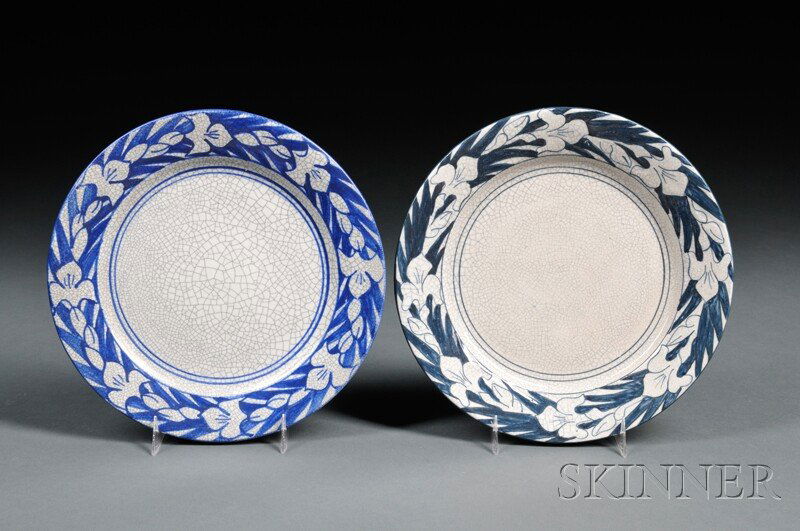 , Two Dedham Pottery Iris Plates, Art pottery, Both