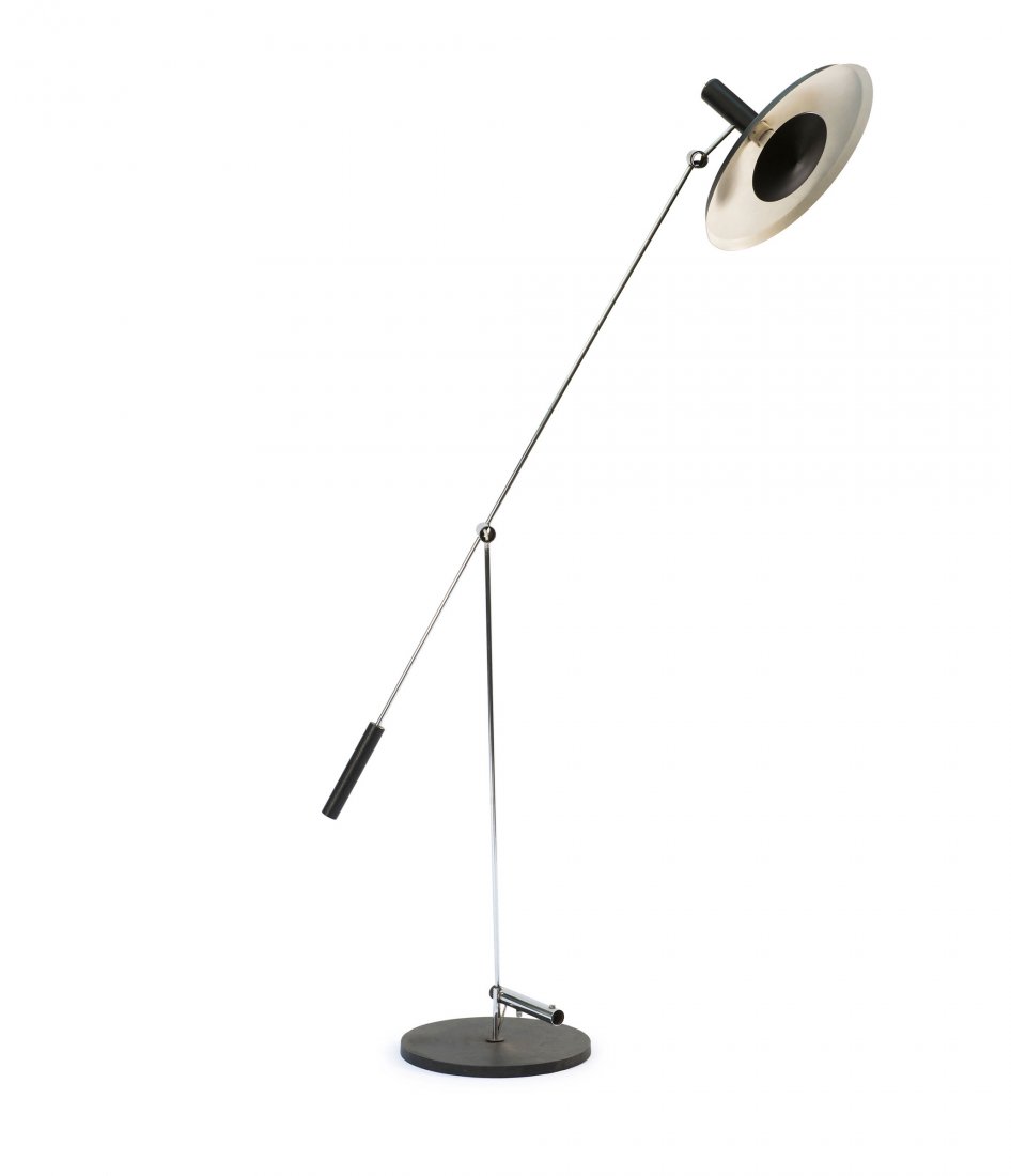 IRON AND BRASS FLOOR LAMP HAVING A CIRCULAR BASE IN THE MANNER OF JACQUES ADNET.Kamelot Auctions4.4(346)$4503 days Left