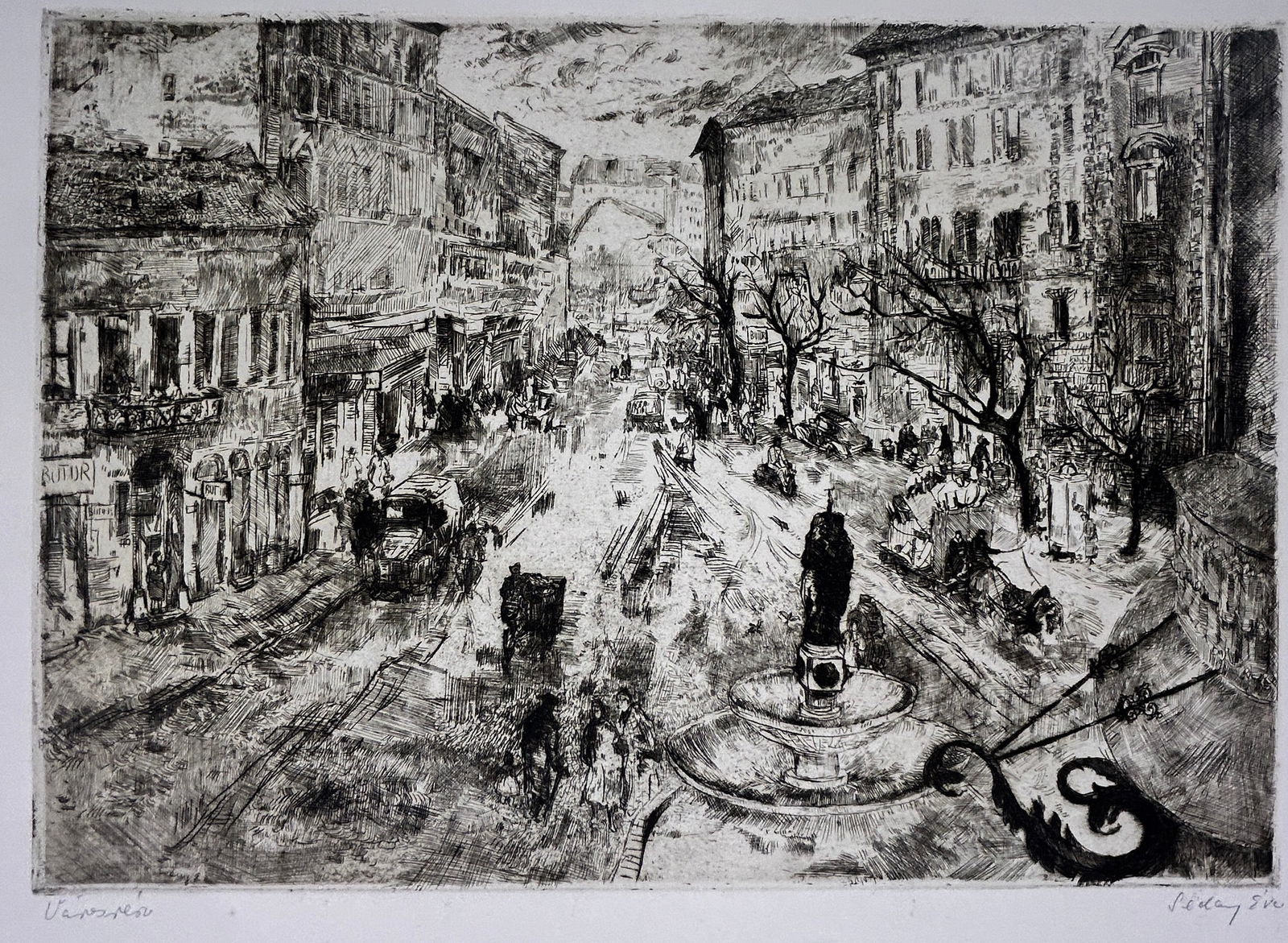 "Village Square" Etching 1936 Eva Seday