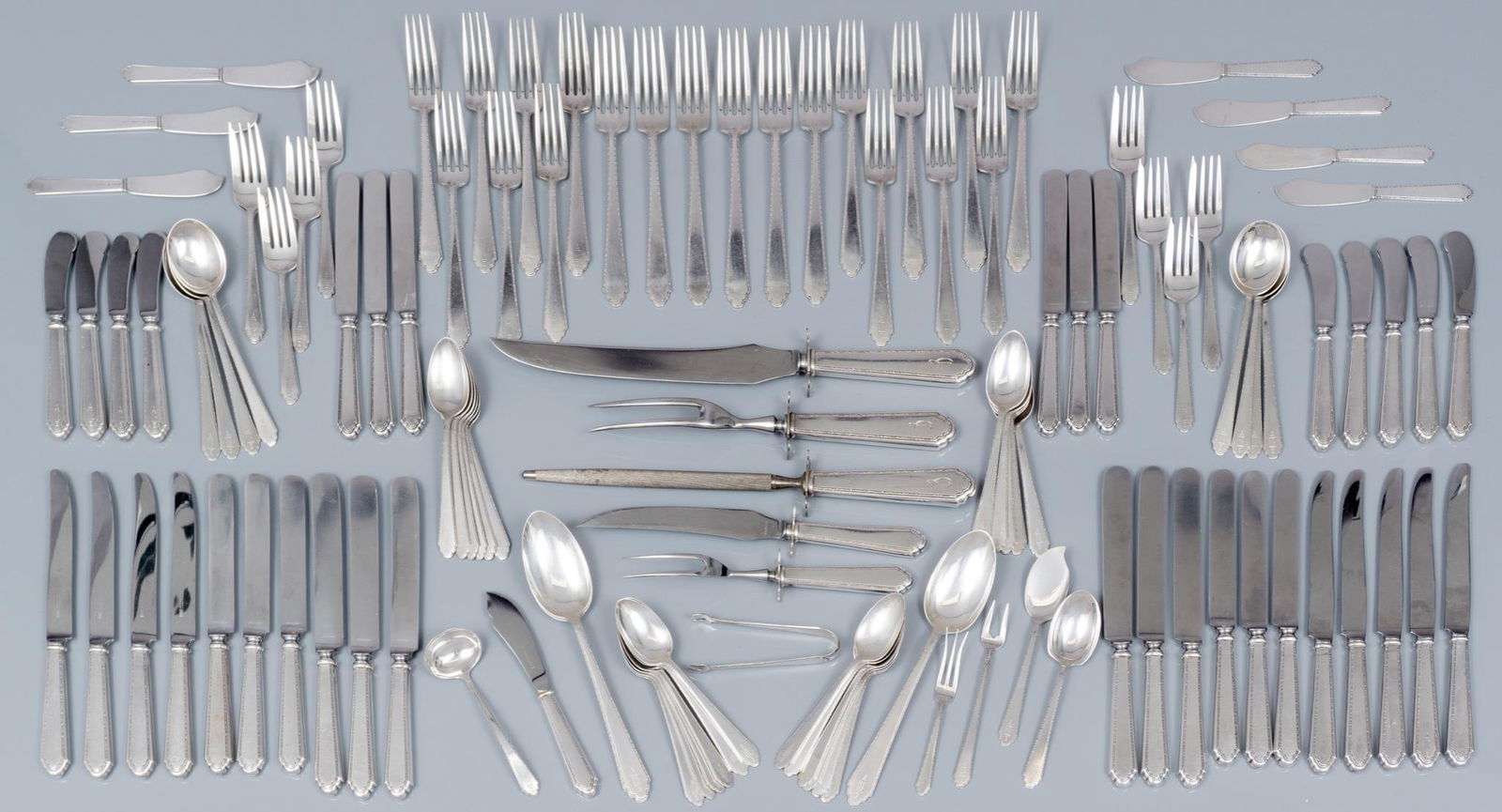 Lot of Silver Flatware.Mar 10, 2026Lot Stainless Steel Flatware6 days LeftINTERNATIONAL SILVER CO. AND OTHER STERLING AND 0.950 SILVER FLATWARE AND SERVING UTENSILS, LOT OF6 days LeftLarge lot of sterling silver and silver handled utensils. To include: Durgin serving fork and spoon3 days LeftTowle Sterling Silver Flatware Service2 days LeftTowle "Dorothy Manners" Sterling Silver Flatware 1017 Grams 40 PiecesMar 28, 2026Towle Louis XIV Sterling Flatware Service308 Lots Away"Melrose" by Gorham Sterling Silver Flatware (34) 764 GramsMar 28, 2026Lunt William & Mary Sterling Silver Flatware Set 48 Pcs for 8 Place Settings3 days LeftTiffany & Co. Silver 'Faneuil' Flatware ServiceMar 15, 2026A 107-piece WMF German Art Deco silver plate flatware service for 12Mar 15, 202671-Piece Sterling Silver .925 Flatware SetMisc. Sterling and Coin Silver Flatware, 55 pcs.343 Lots AwaySTERLING FLATWARE INC. 7 KNIVES, 4 DINNER FORKS, 4 T-SPOONS & 2 SALAD FORKS APPROX. 22.9 TROY OZMar 15, 2026(94) PIECE GORHAM STERLING FLATWARE SERVICEMar 05, 2026Sterling Flatware Including Mustard & Salt SpoonsMar 07, 2026