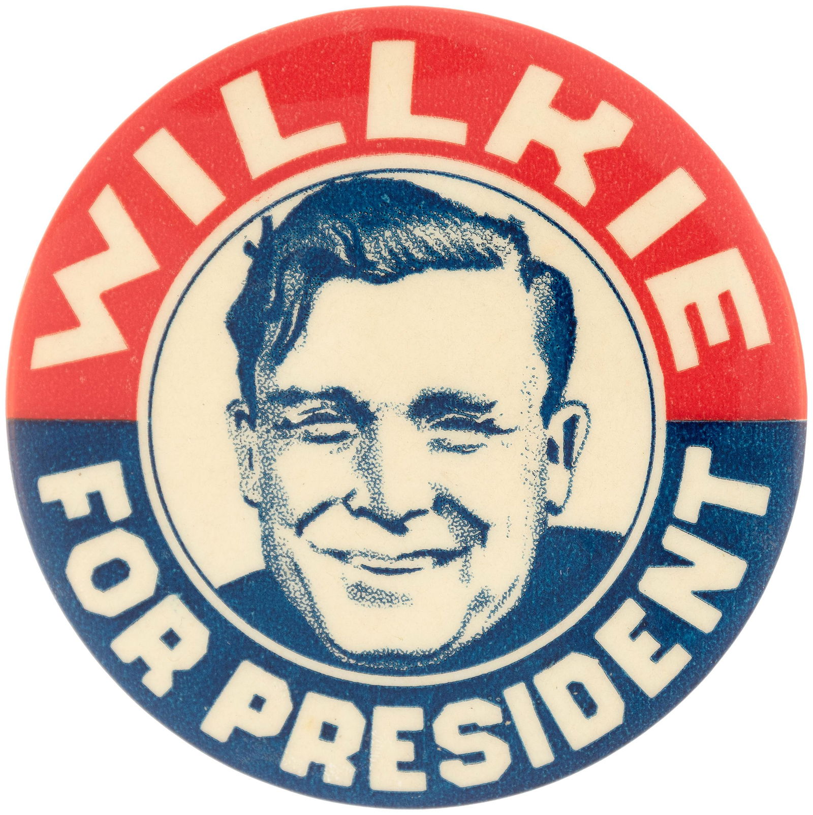 "WILLKIE FOR PRESIDENT" SMILING FACE BUTTON.