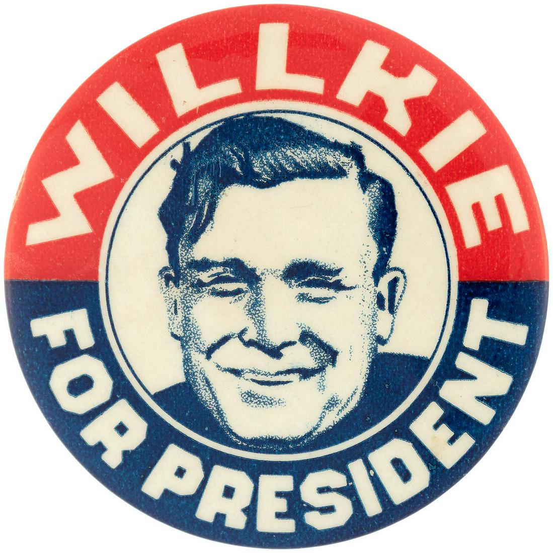 "WILLKIE FOR PRESIDENT" SMILING PORTRAIT BUTTON.