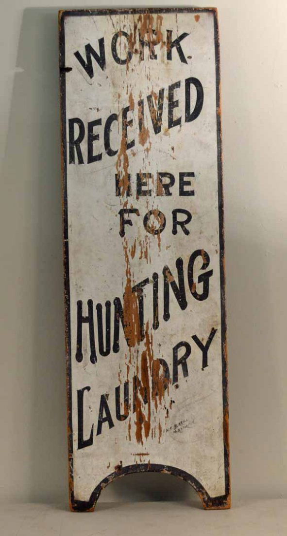 "Work Received here for Hunting Laundry" Sign