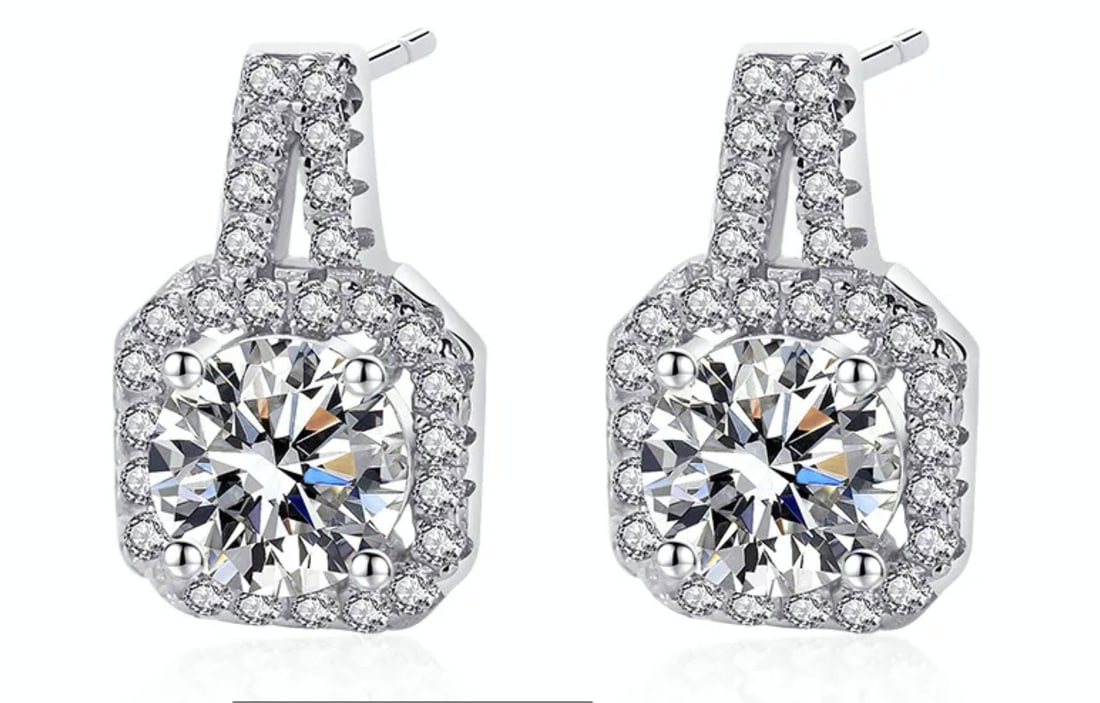 Sterling Silver 0.5ct Moissanite Diamond Halo Earrings