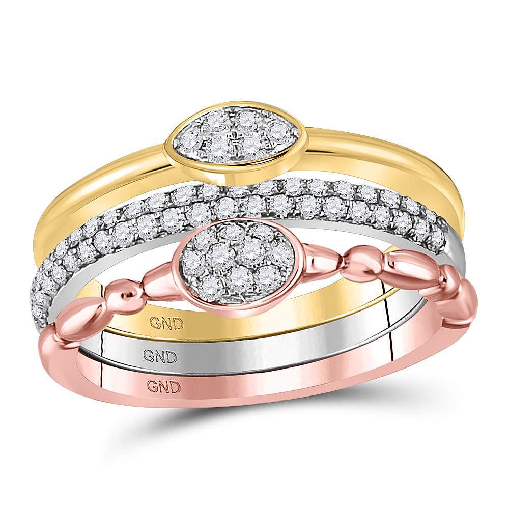 0.49 CTW Diamond 3-Piece Stackable Ring 10kt Tri-Tone