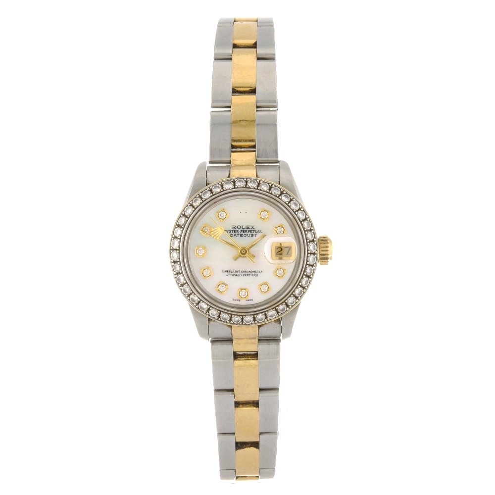 Rolex. A lady's stainless steel and gold diamond set automatic calendar bracelet watch Datejust...Bonhams4(382)£2,0008 hrs Left