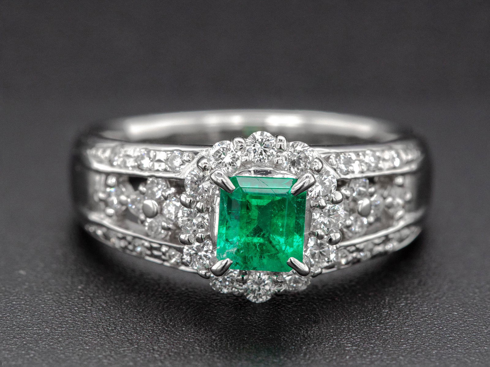 0.95tcw - Emerald & Diamonds - Platinum Ring