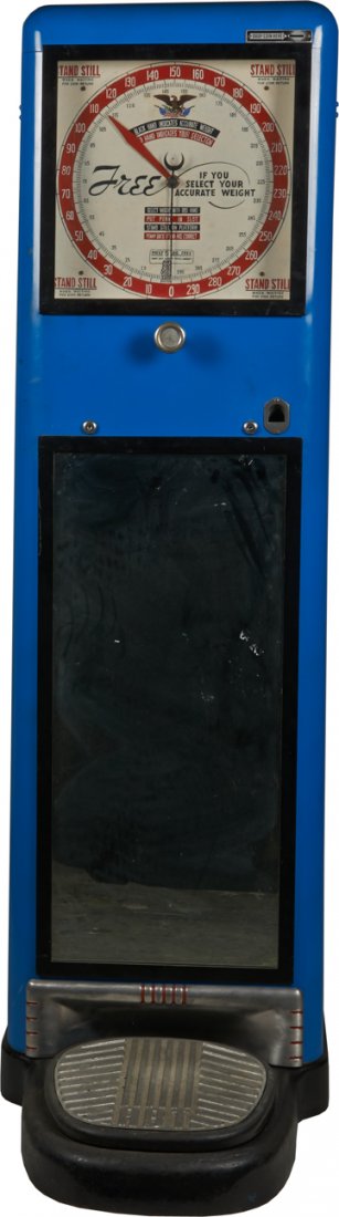 SoldColumbia Weighing Machine One-Cent ScaleColumbia weighing machine, 1-cent scale, Mirrored back. New York, circa 1920. H 70 in. W 15-3/4 in. D 27 in. Condition: Untested, appears in good condition. See Sold Price