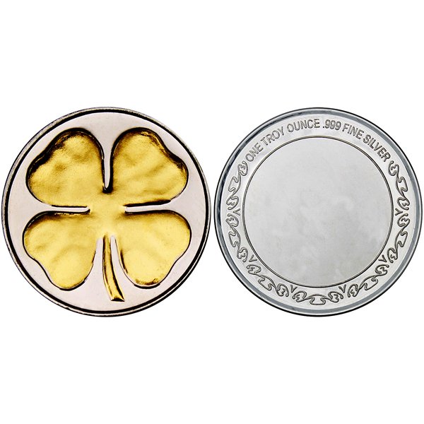 1 Oz Four Leaf Clover Design Silver Round - Gilded