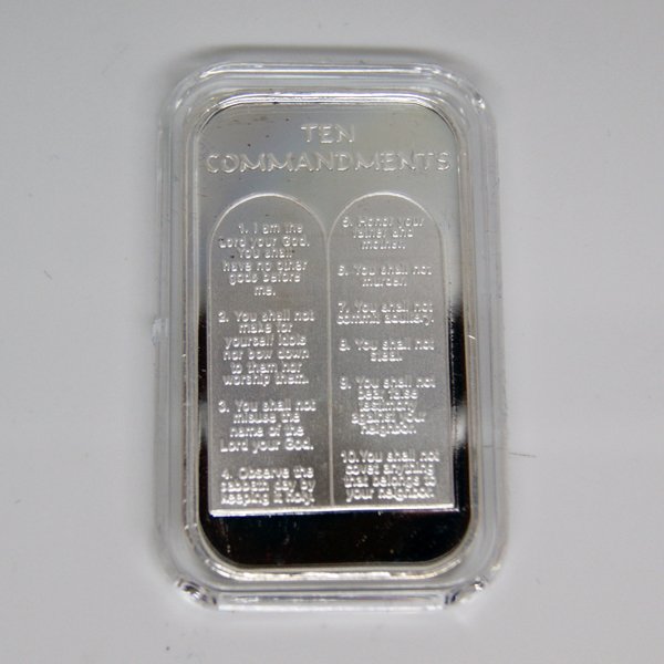 Silvertowne Mint Ten Commandments 1 oz .999 Fine Silver Ingot/ BarMatthew Bullock Auctioneers4.7(2.1k)$20(2 bids)Mar 07, 2026