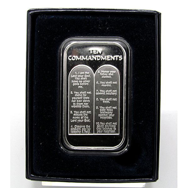 1 Oz Ten Commandments Silver Bar - w/Gift Box