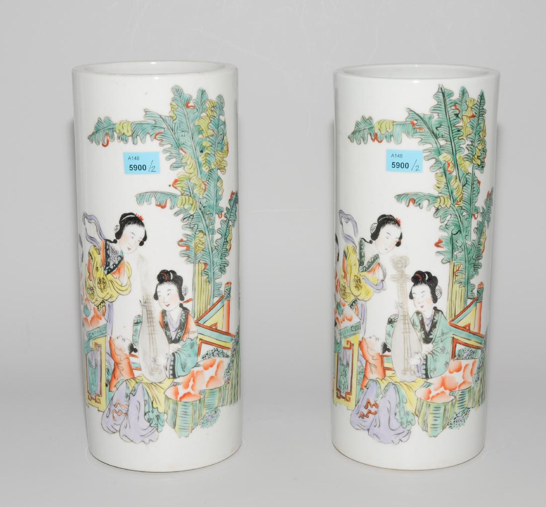 1 Paar Vasen China, 20.Jh. Porzellan. Zylinderform.