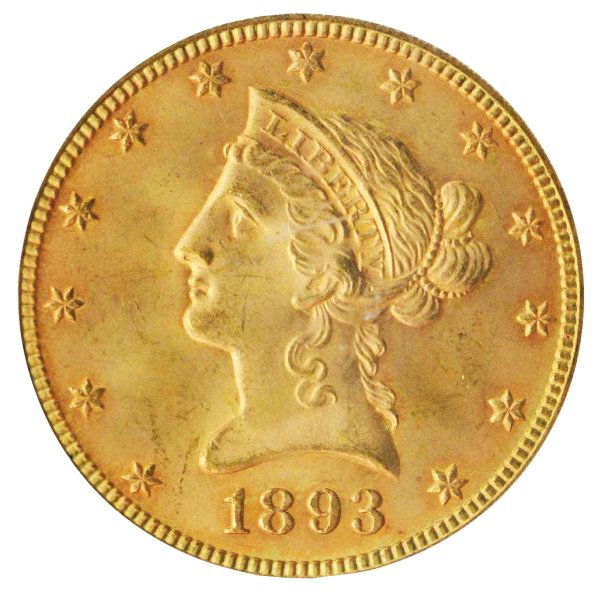 Sold1893 $10 LIBERTY GOLD - PCGS MS61Bid with confidence at Silver Towne Auctions. *PCGS8725* ESTIMATE $800-$925See Sold Price