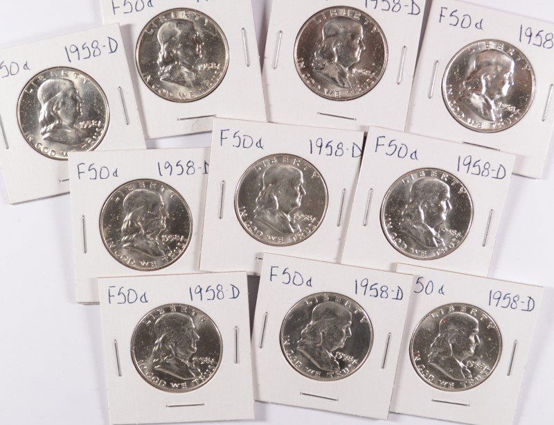 (10) 1958-D FRANKLIN HALF DOLLARS CH BU