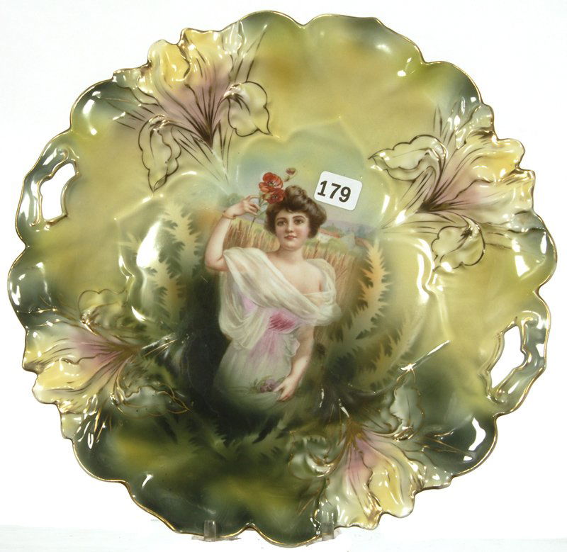 Two Handled Cake Plate, Marked R.S. Prussia, Iris Mold