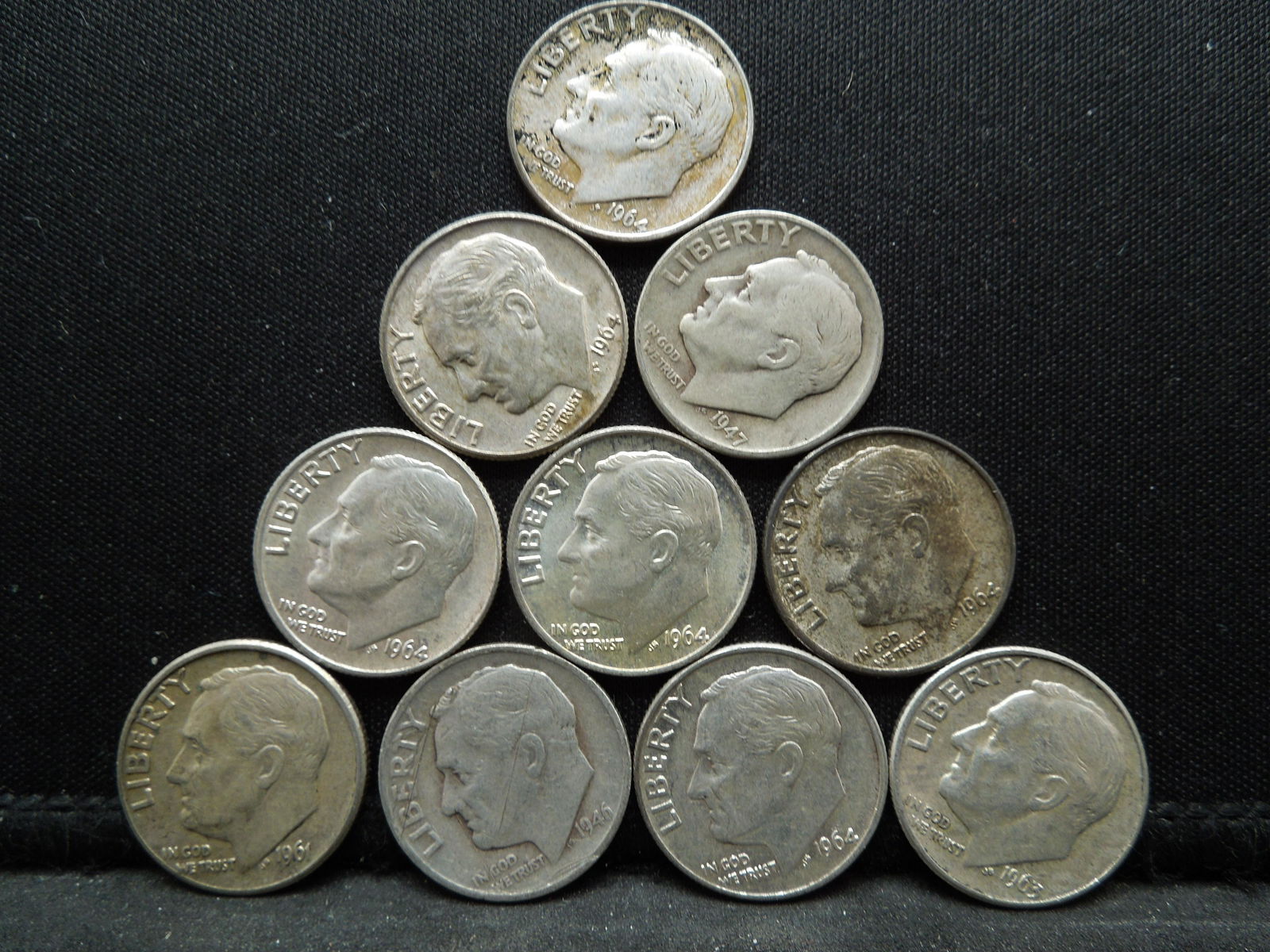 SoldLot of 10 90% Silver Roosevelt Dimes. Mixed DatesLot of 10 90% Silver Roosevelt Dimes. Mixed DatesSee Sold Price