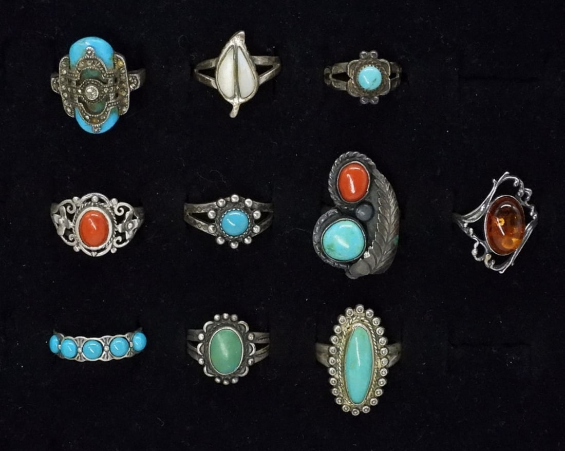 (10) 925 TURQUOISE, AMBER, MOP RINGS