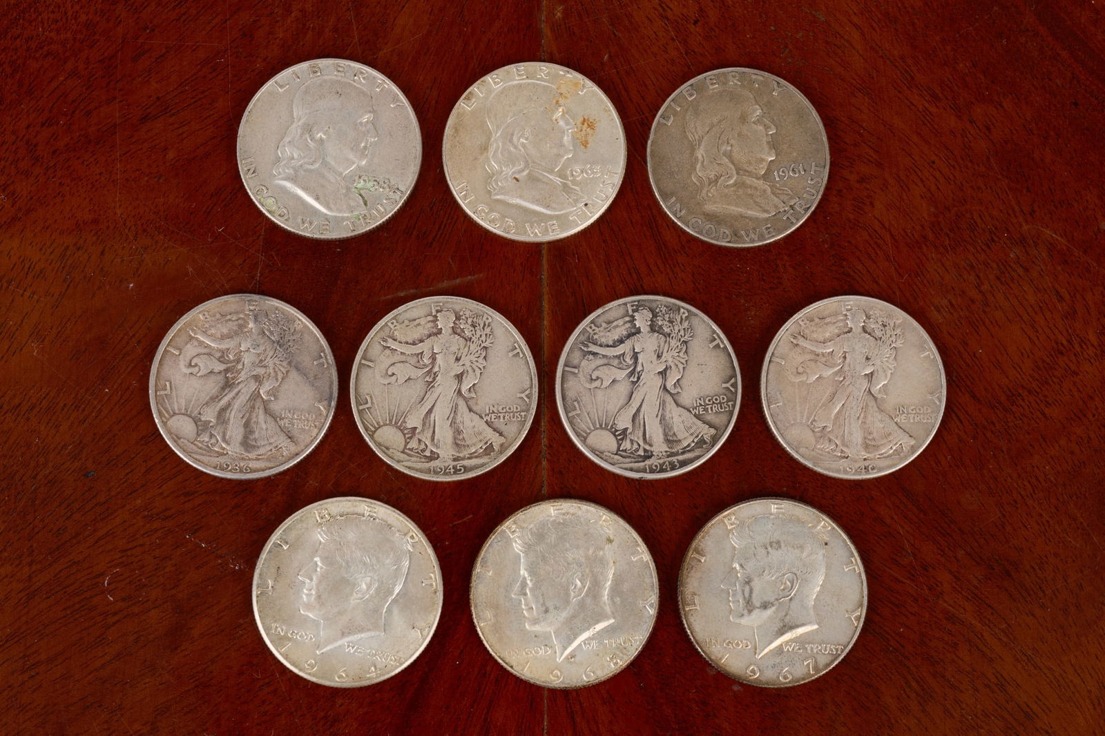 (10) AMERICAN SILVER HALF DOLLARS