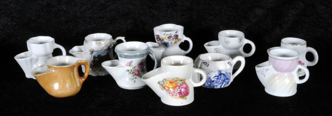 10 ANTIQUE ENGLISH PORCELAIN EGG SEPARATERS. DIFFER