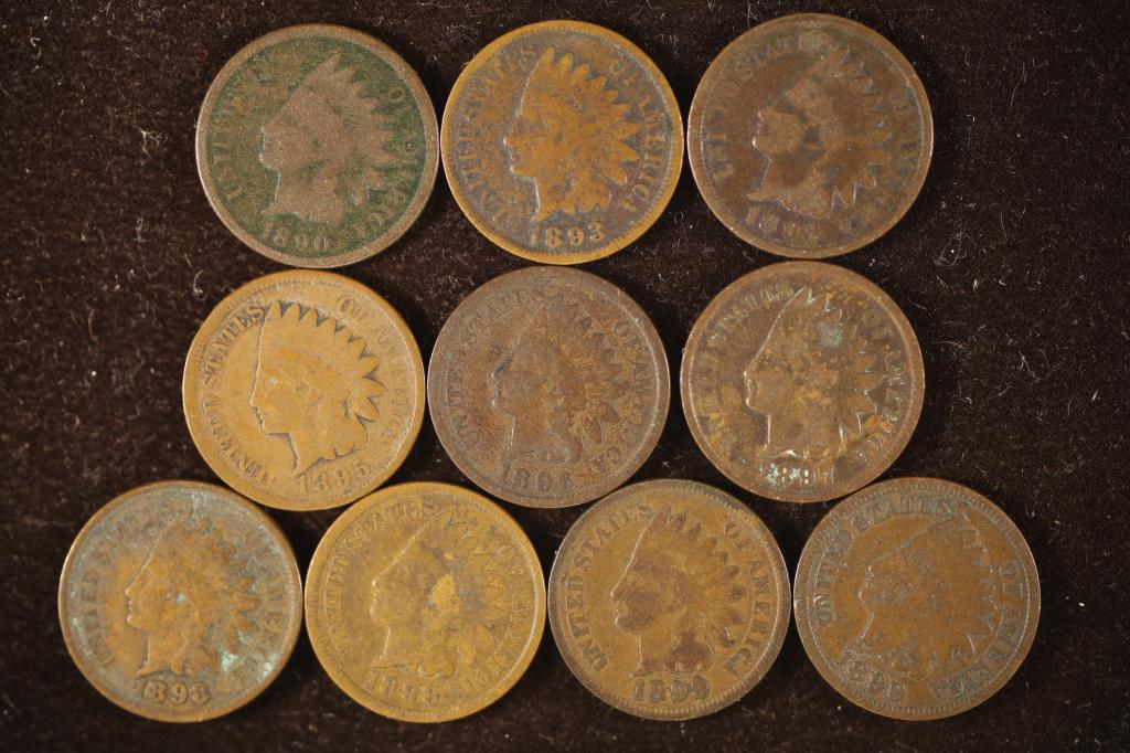10 ASSORTED 1890'S INDIAN HEAD CENTS
