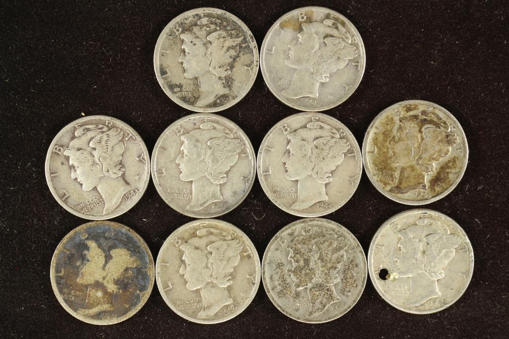 10 ASSORTED 1920'S-1940'S MERCURY DIMES