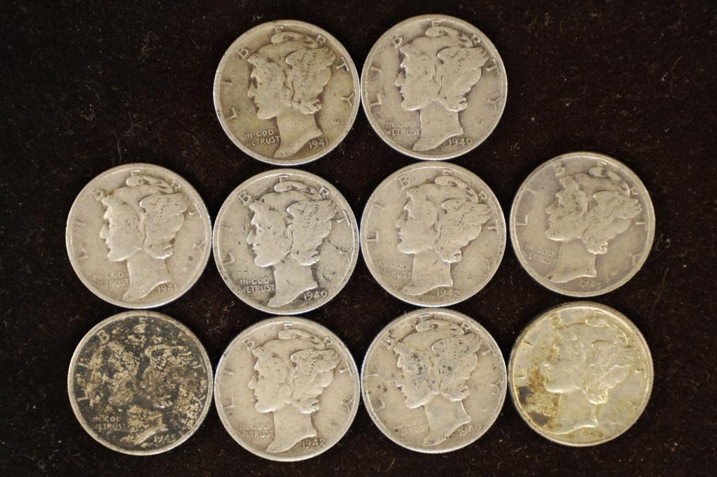 Sold10 ASSORTED 1940'S MERCURY DIMESYou must call or email us with your credit card number directlySee Sold Price