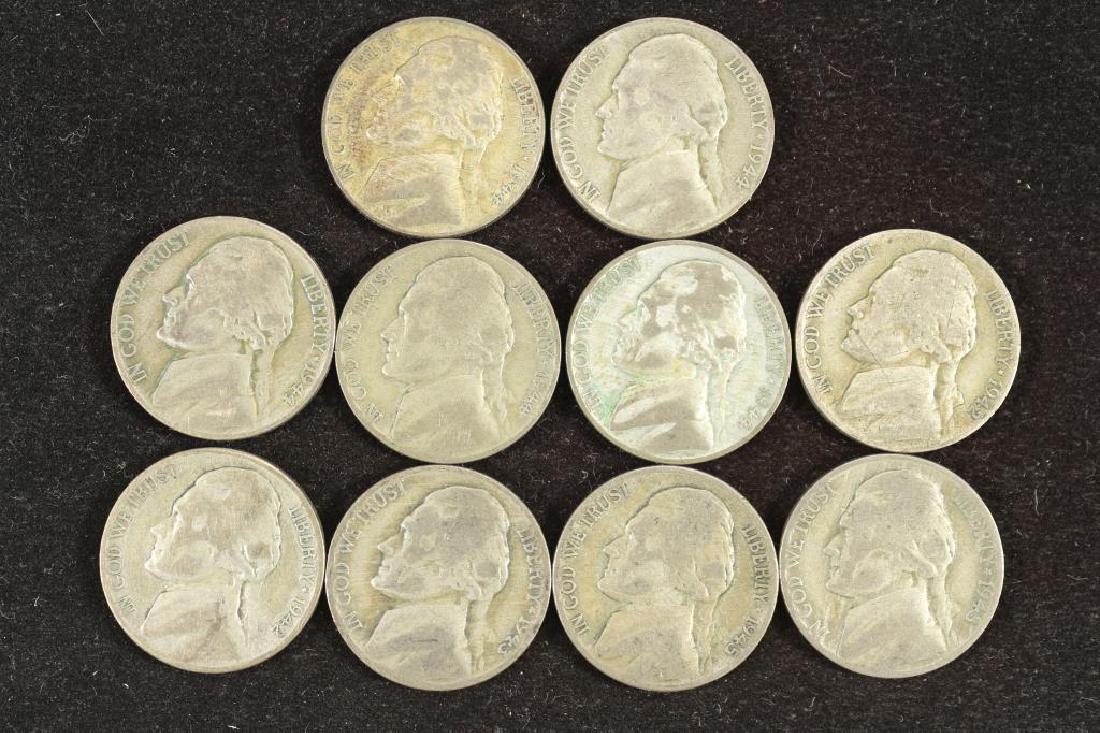 10 ASSORTED 35% SILVER JEFFERSON WAR NICKELS
