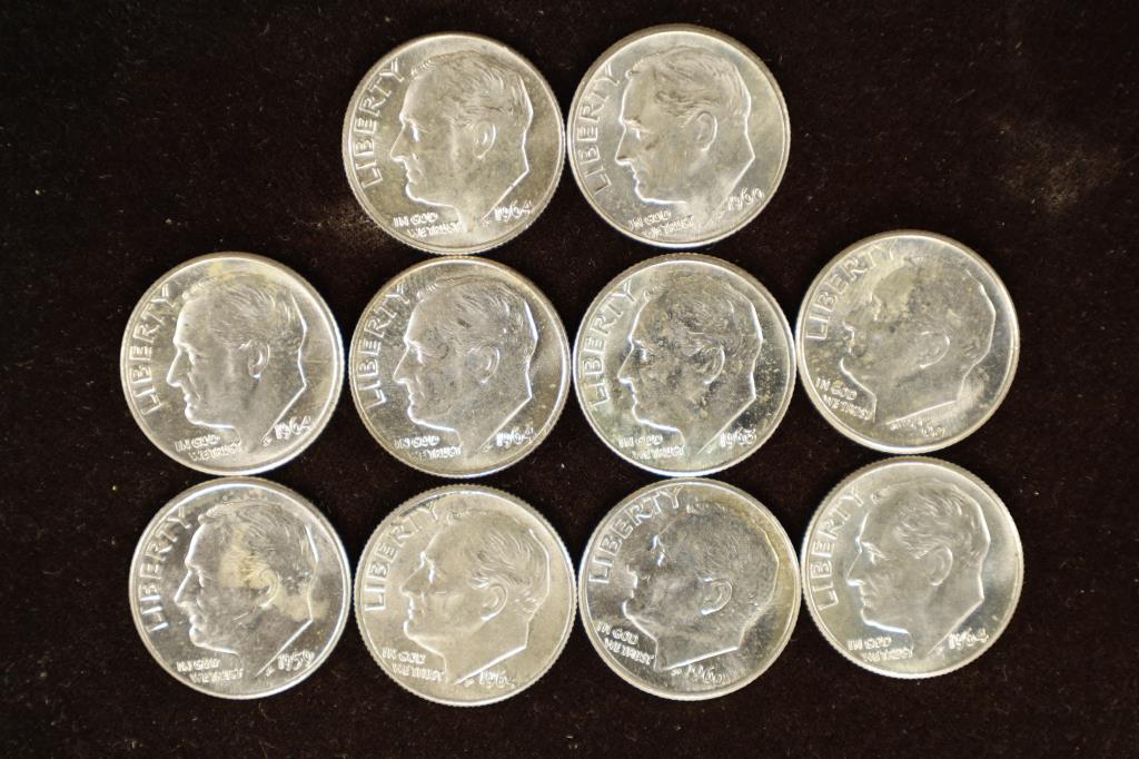 10 ASSORTED BRILLIANT UNC 1959-1964 SILVER