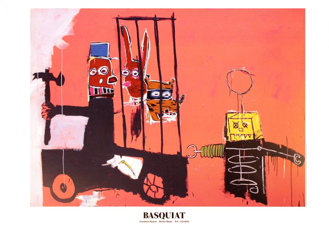 SoldJean-Michel Basquiat, "Molasses" Original 1983This original lithograph print poster commemorates an exhibition by The Foundation Beyeler of the paintings of the world famous American artist Jean Michel Basquiat ( 1960 - 1988 ). This lithograph poSee Sold Price