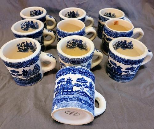 (10) Blue Willow Porcelain Mugs