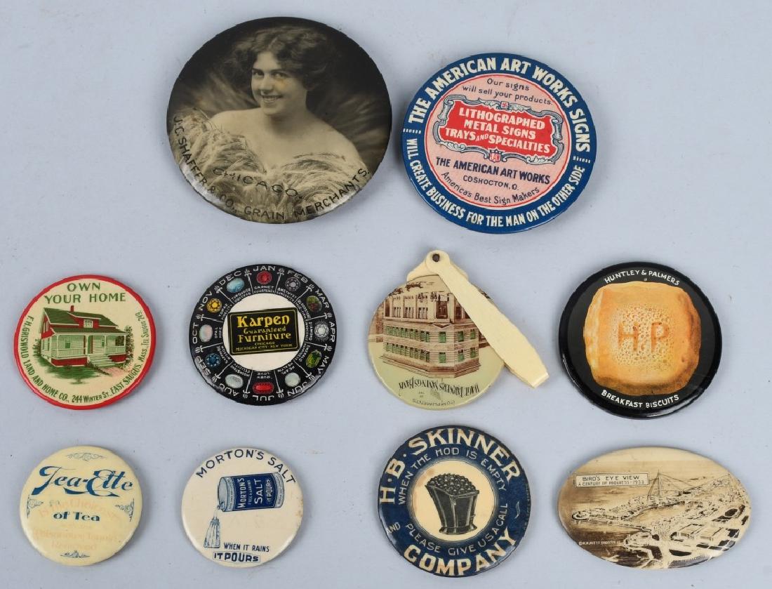 Radiator Scripts LotFeb 21, 2026Lot Antique & Vintage Percussion Cap TinsMar 07, 2026Lot of Assorted Costume JewelryMar 05, 2026Lot of Fraternal Pins, Pendants and ClipsMar 05, 2026LOT OF 13: COIN NOVELTY KNIVES, ELOI, ADVERTISING, KENNEDY HALF DOLLAR, HIKOKFeb 25, 2026Lot of antique jewelry and accessories. To include: 1) 14K gold framed micro mosaic pin of ruins.Mar 01, 2026LOT OF PINBACKS, POLITICAL BUTTONSFeb 26, 2026LOT OF VINTAGE SALVE TINSFeb 26, 2026LOT OF VINTAGE MAKE-UP TINSFeb 26, 2026LOT OF COMPASSES, BADGE, AUTO CLOCKFeb 26, 2026ASST SMALLS INCL. BOX BROWNIE CAMERA, GRAY'S POTTERY +Feb 21, 2026Collection of six reliquary medallions/reliquaries, oval models in (silver) metal, with relics1 day Left(12) COLLECTION OF TRINKET / PILL BOXES, VARIED MAKERS, MATERIALS & DESIGN7 days Left8 - Small Point of Sale Product DisplaysFeb 25, 2026Early 1900's Cigarette Pins, Military Buttons and Other Memorabilia16 hrs LeftCOLLECTION OF ADVERTISING POCKET MIRRORS6 days Left