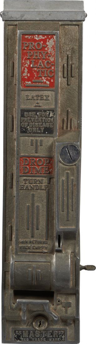 SoldMaster Prophylactic Vending Machine. Columbus: NorrisMaster Prophylactic Vending Machine. Columbus: Norris Manufacturing, ca. 1920s. Ten-cent coin operated machine of cast aluminum dispenses condoms Height 20”. Working, with keys.See Sold Price