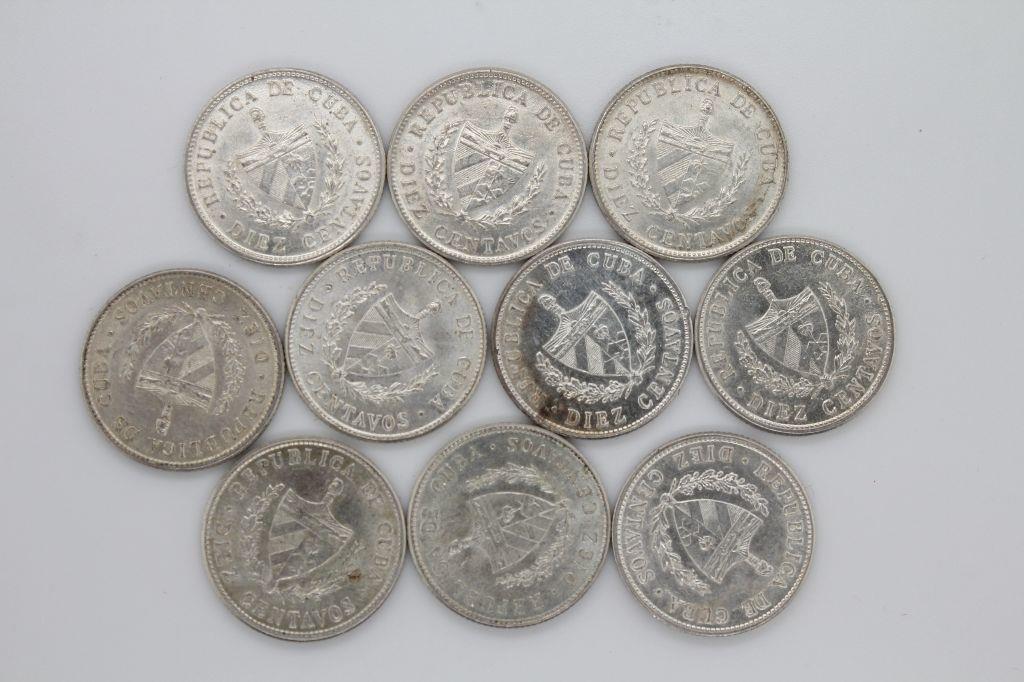 10 count 1948-49 Cuba 10 Centavos Unc.